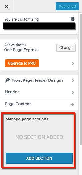 Symptom 2 : When you go to Appearance --> Customize, the "manage page sections" will be empty even if sections are in the Front Page.