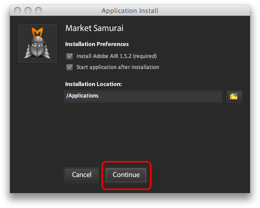 Click the 'Install' button to confirm that you want to install Market Samurai.