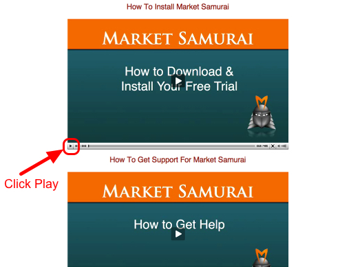 Click the 'Play' button to watch a video that introduces you to Market Samurai.